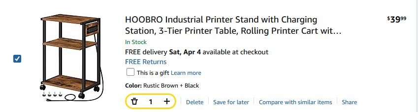 HOOBRO Industrial Printer Stand with Charging Station, 3-Tier Printer Table,