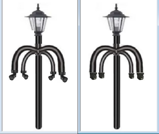 17 in. 90-Degree Quad Bullhorn Mounting Bracket Tenon Adapter for Round Outdoor Pole Lights