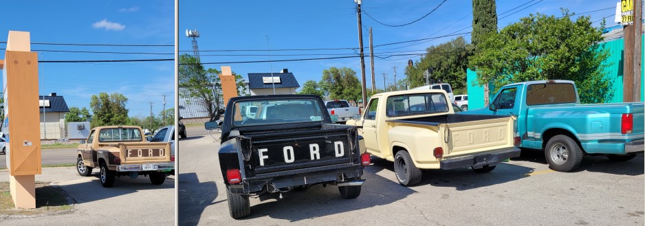 Modified the pole to fit onto the bullhorn. The shop has a collection of old trucks in the parking lot.