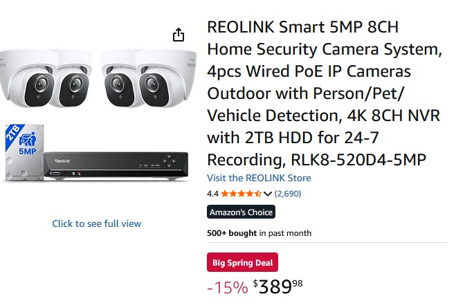 4) For 389.98 I can get a name brand (Reolink) 8 Channel NVR and 4 cameras.