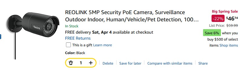 NVR with 500 GB hard drive, 4 cameras that can read license plates, and 4 network cables for only $159.88? Sign me up!"