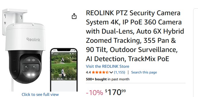 the Reolink Trackmix camera connected to the 5iktery NVR: