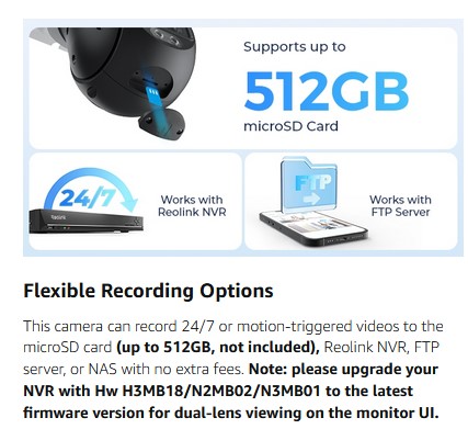RELIABLE CONNECTION WITH PoE: Thanks to the PoE technology, this security camera can load 4K HD images in unparalleled stability. You can install the camera quickly and nicely with only one network cable. NOTE: IEEE802.3af PoE switch/PoE Injector/Reolink PoE NVR needed, not included. Please upgrade your Reolink NVR with Hw H3MB18/N2MB02/N3MB01 to the latest firmware version for dual-lens viewing on the monitor UI