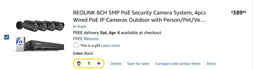 4) For 389.98 I can get a name brand (Reolink) 8 Channel NVR and 4 cameras.