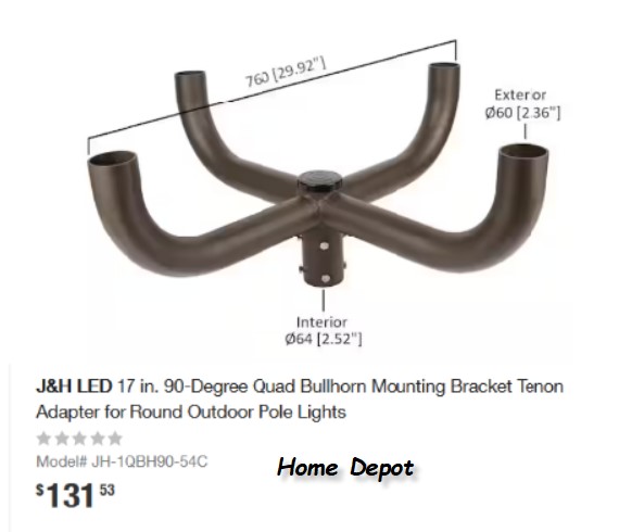 17 in. 90-Degree Quad Bullhorn Mounting Bracket Tenon Adapter for Round Outdoor Pole Lights