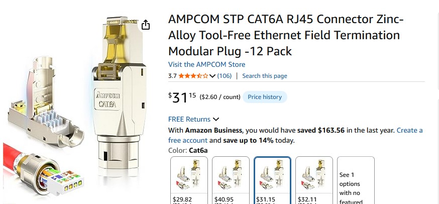 AMPCOM STP RJ45 Connector CAT6A Tool-Free Ethernet Field Termination plugs